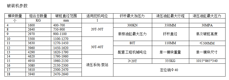 多功能:圆桩机和方桩机实现模块通用,变换模块组合实现圆桩、方桩皆能破除,一机双用
