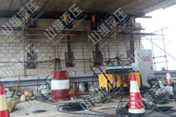 2. 安装液压软管,根据千斤顶的分布,分别将各个千斤顶串联一起再和液压顶升泵站的油路出口用液压软管连接上。